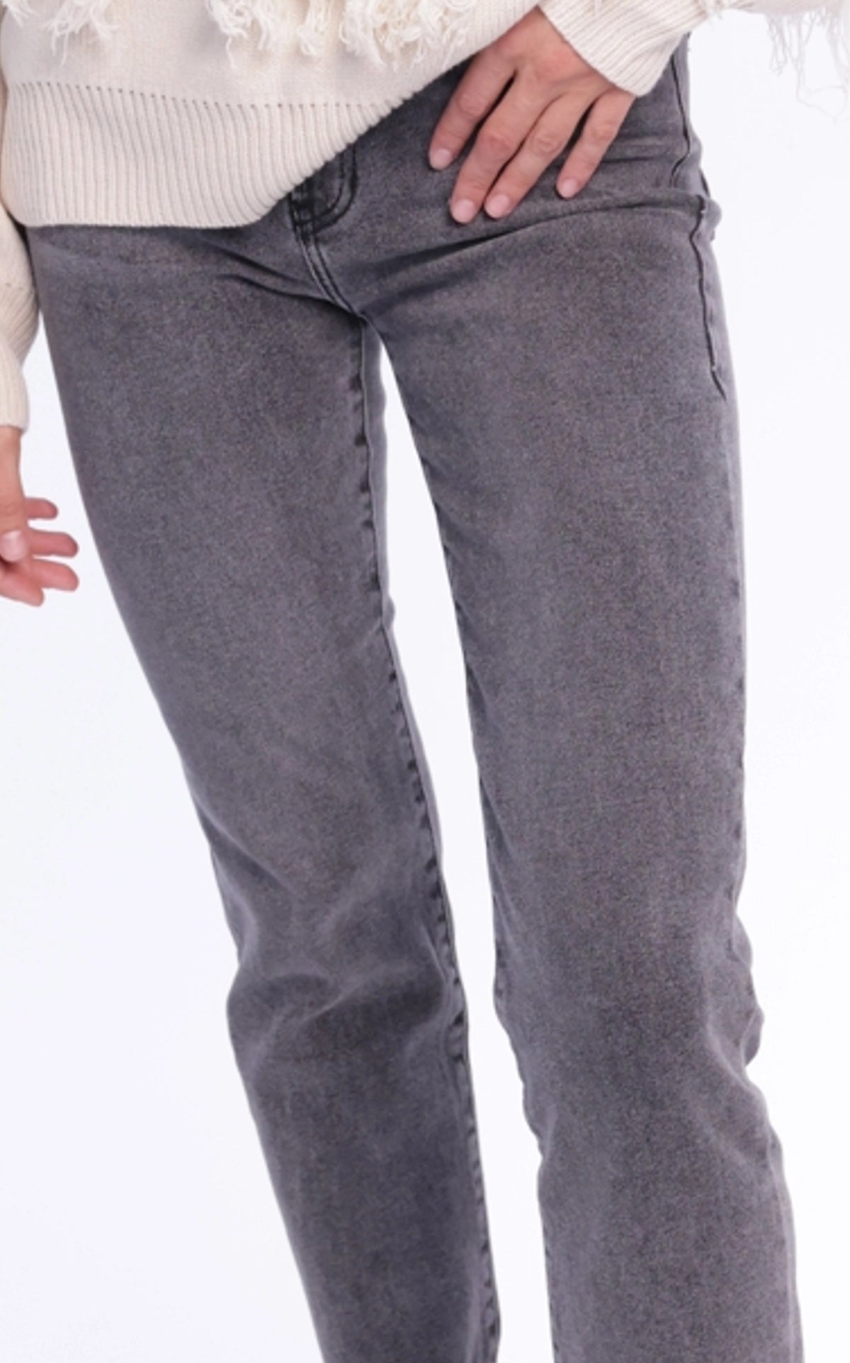 Sleek and chic, with a raw-edge hem and a vintage gray wash, these high-rise jeans with a touch of stretch are a wardrobe essential.