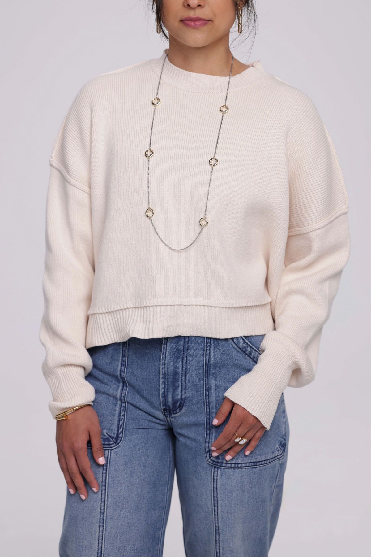 For chilly nights or pumped-up AC, this ribbed, cotton-blend sweater offers essential versatility and lightweight coziness.